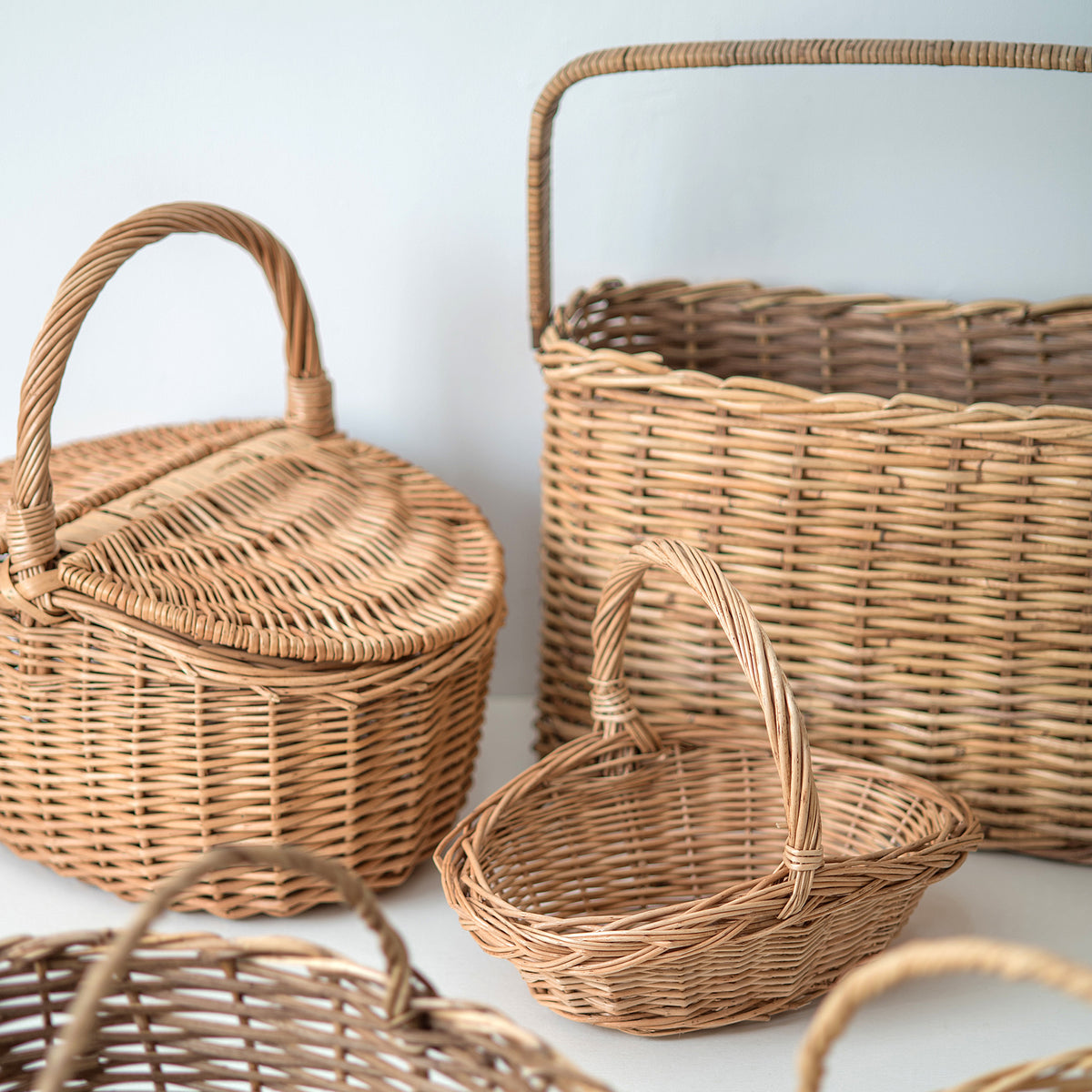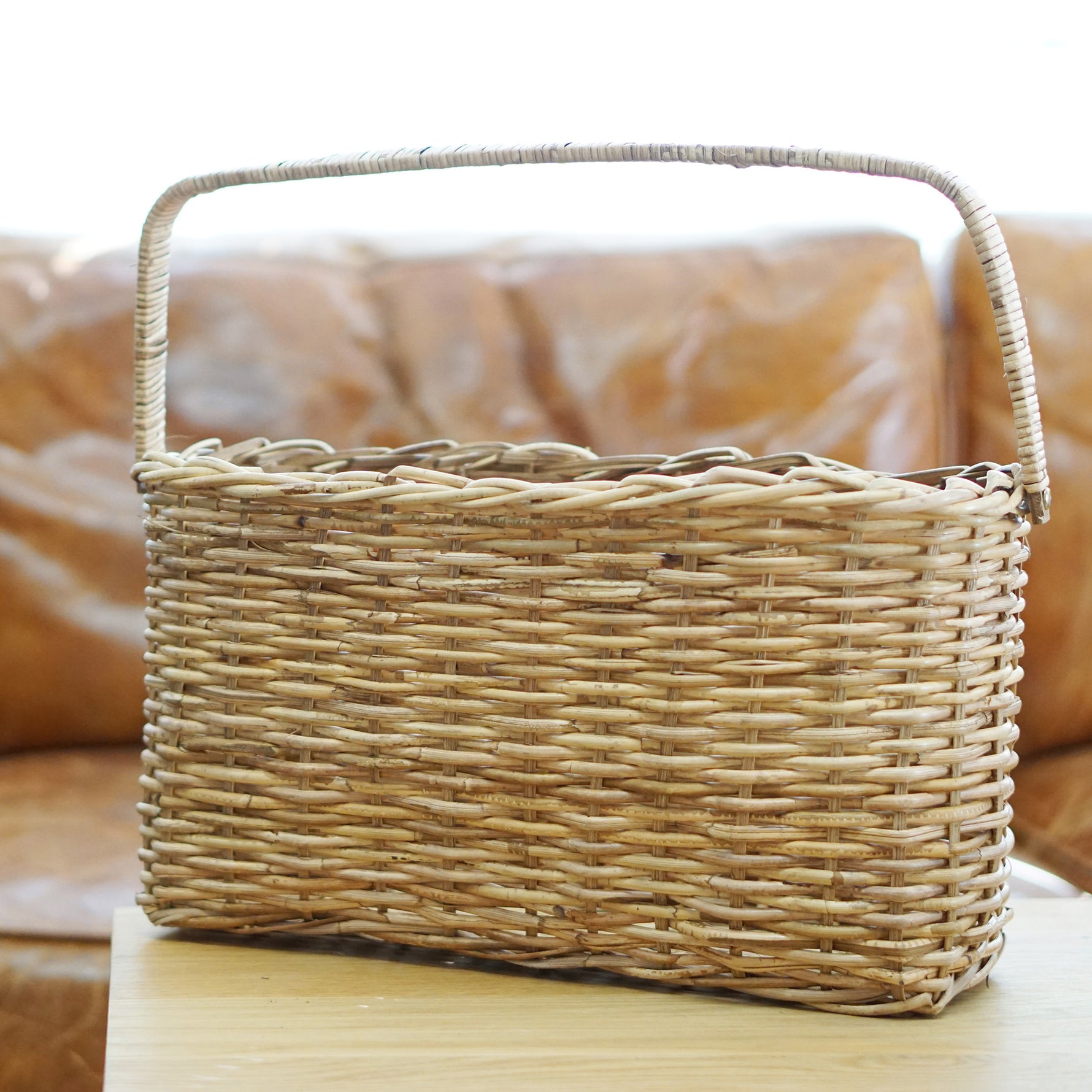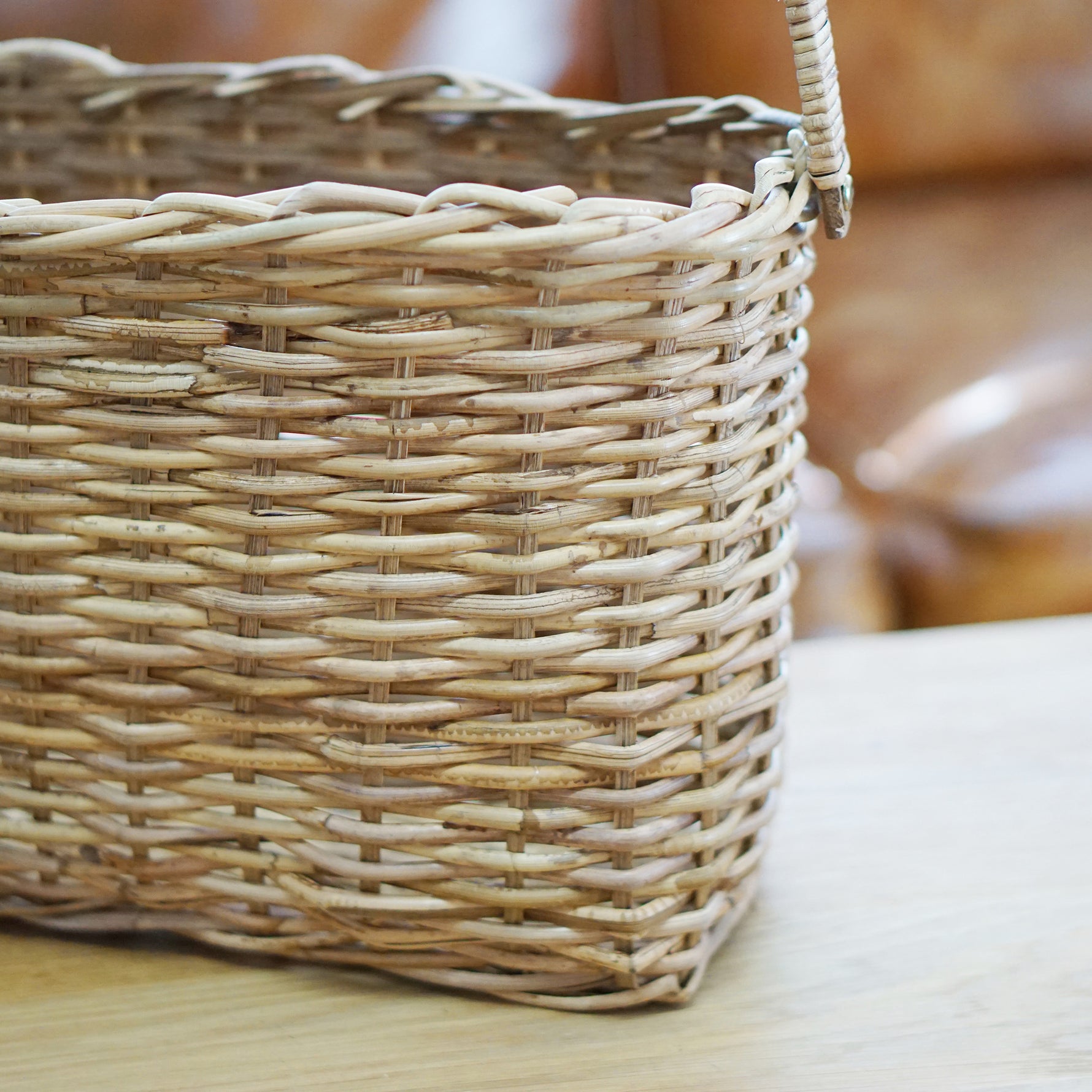 太めのラタンでざっくり編んだバスケット。