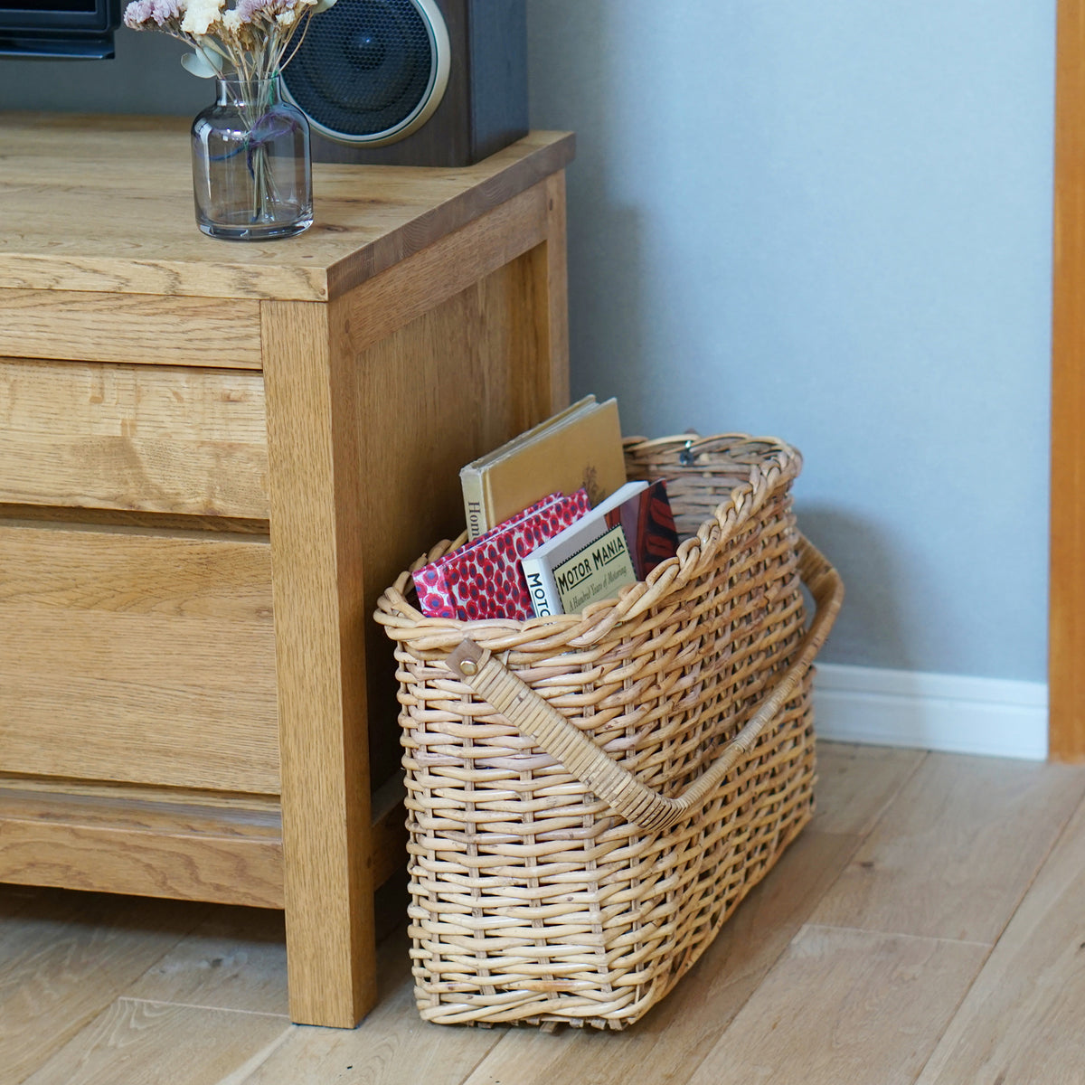 ソファ横に置いて読みかけの雑誌をしまったり、玄関に置いてスリッパをしまったりにもおすすめです。