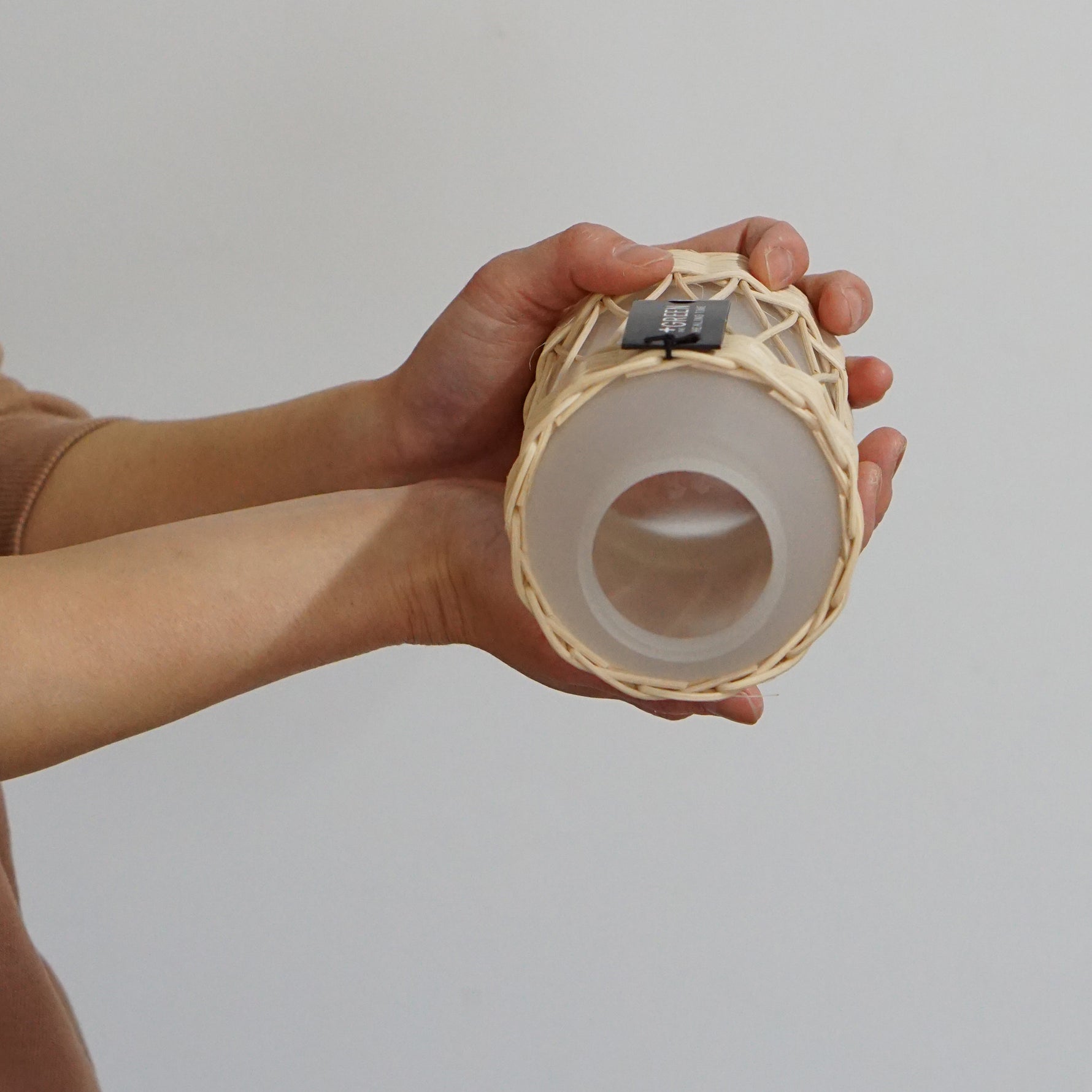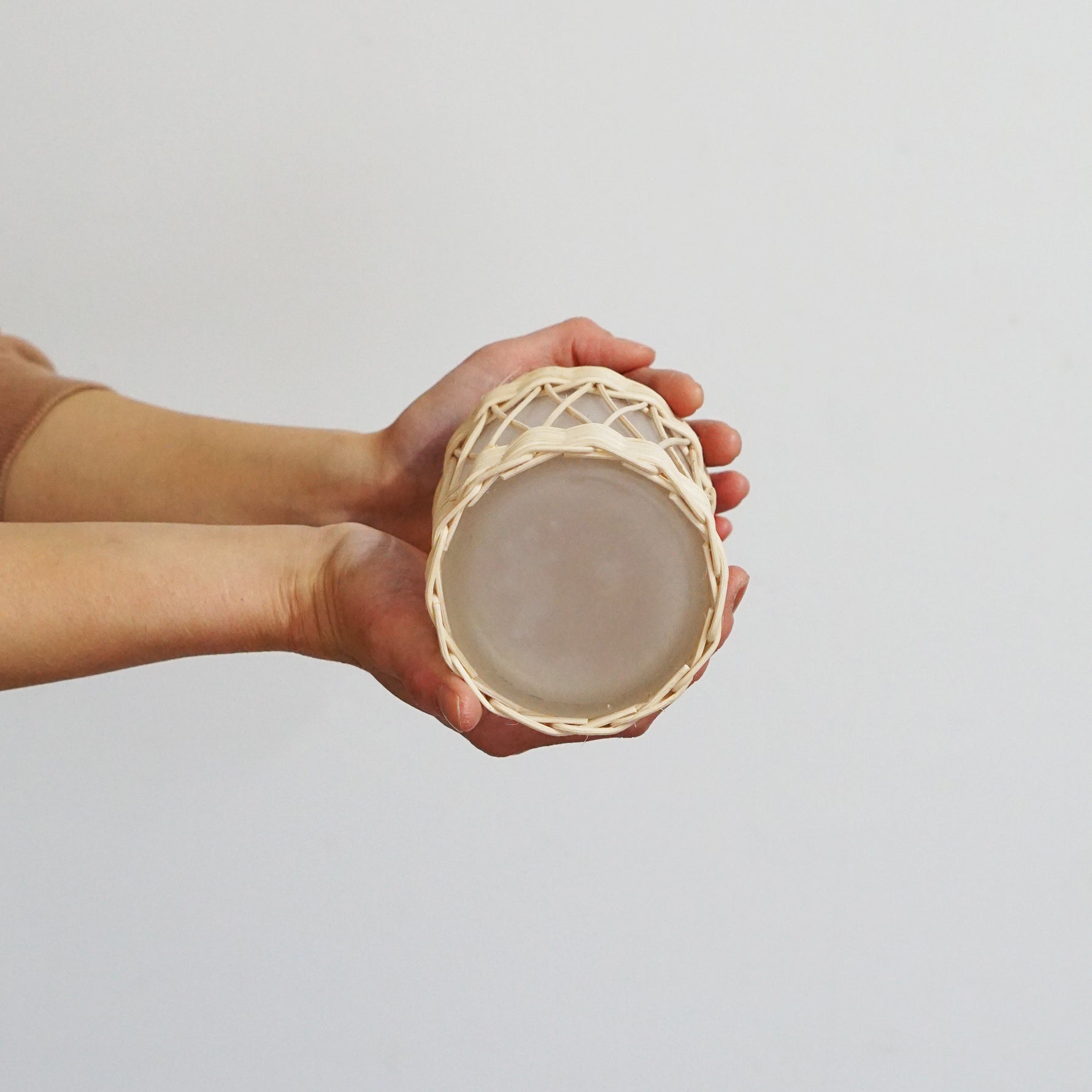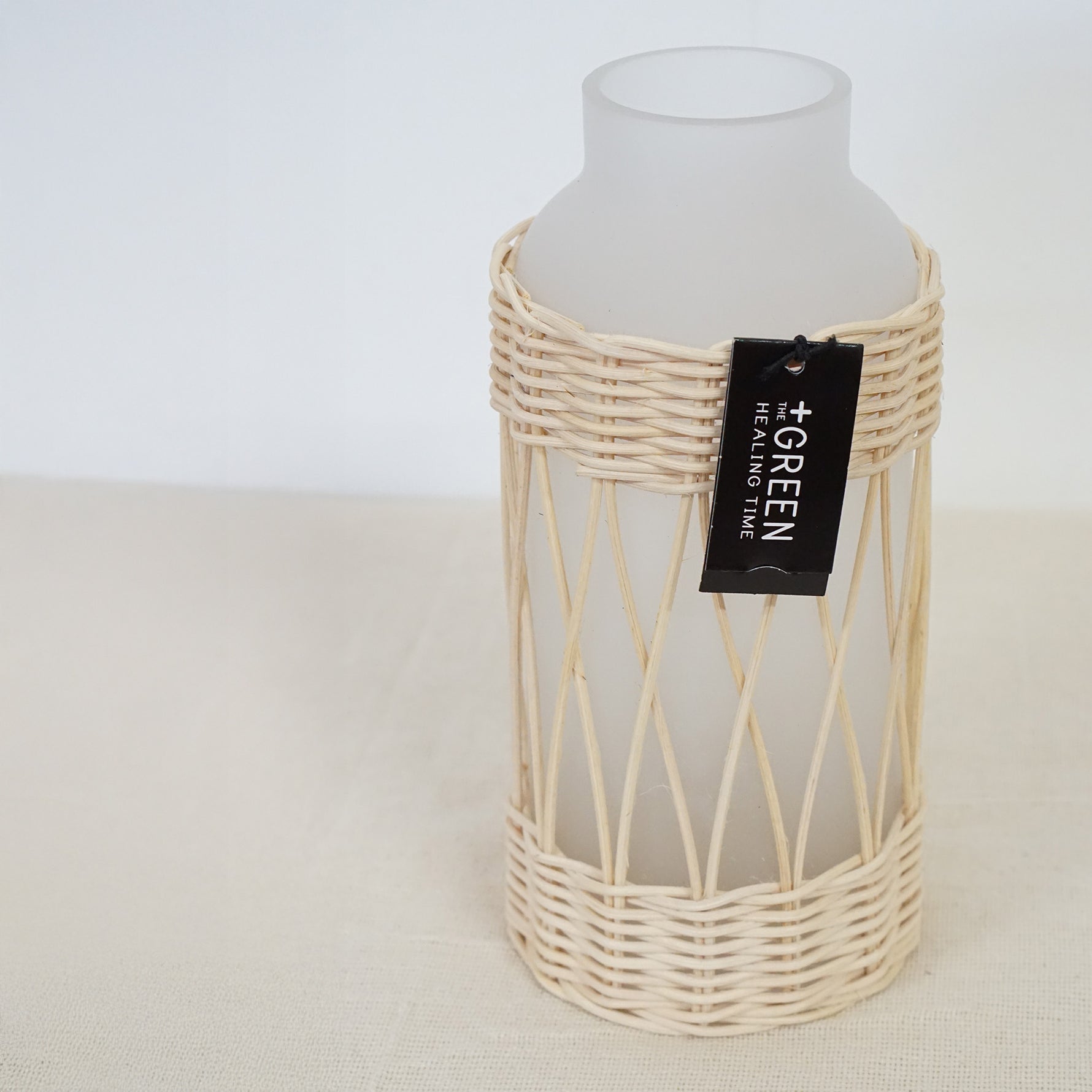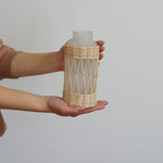 華奢な細めのラタンと白いガラスの組み合わせで、清楚な雰囲気を持ったフラワーベース