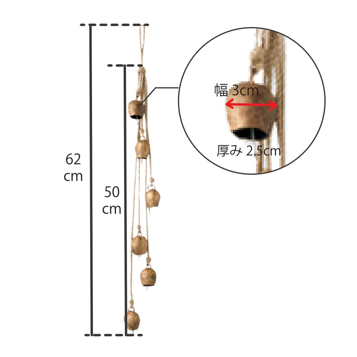 ベルの音色、ひもの長さに個体差があります。
