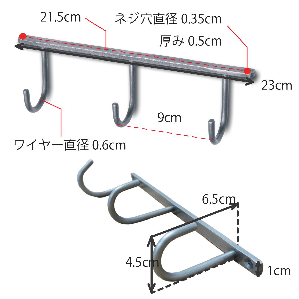 63144 アイアンハンギングフック 3連 アンティークゴールド