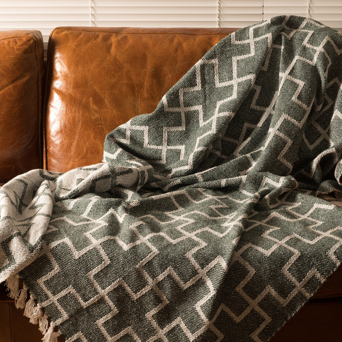シンプルなリピートデザインで、フリンジ付きのスローケット。