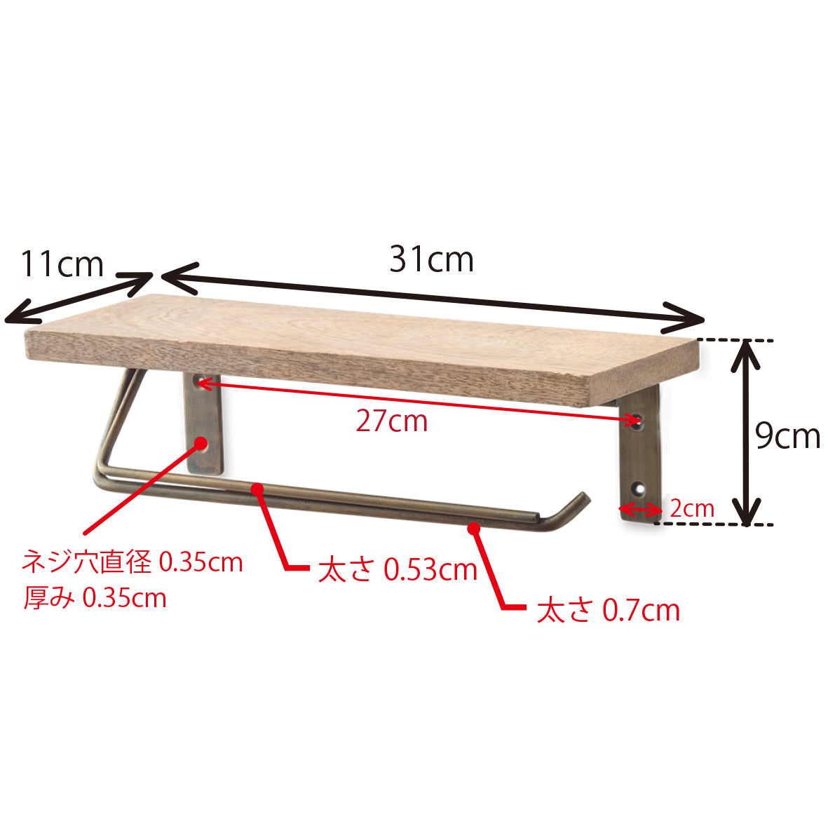 ・防水、防滴処理は施されておりません。 ・素材の特性上、直射日光や高温多湿、水濡れにより変色や腐食、サビが発生します。 ・手作業での塗装の為、色付きにばらつきがございます。 ・製品の落下・接触などにより塗装が剥がれる可能性がございます。 ・壁は材質、気候、経年等により強度が異なります。金具を取り付ける壁が重荷に耐えられるかご確認ください。 ・石膏ボード、コンクリート、化粧ベニヤ等へのお取り付けの場合はそれぞれの材質に合った市販の金具をお買い求めください。 ・予期せぬ事態での落下、脱落することも予想されます。製品の下には物を置かないようにして下さい。