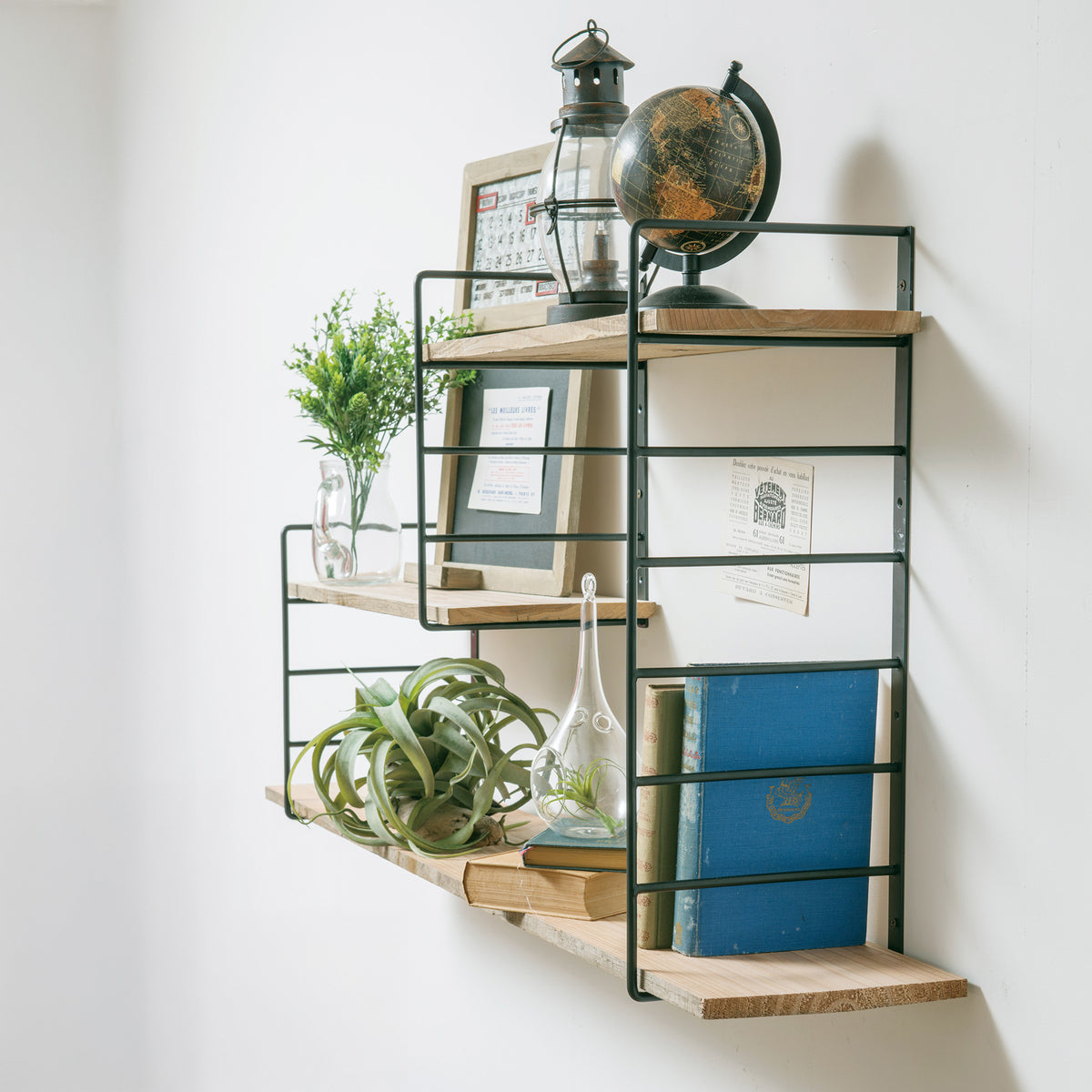 棚板の枚数や高さをアレンジできるウォールシェルフです。