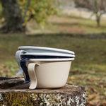 アウトドアで人気のシェラカップ型 キャンプやピクニックにぴったりのデザイン。かさばりがちな食器も持ち出しやすい軽量でコンパクトな設計。
