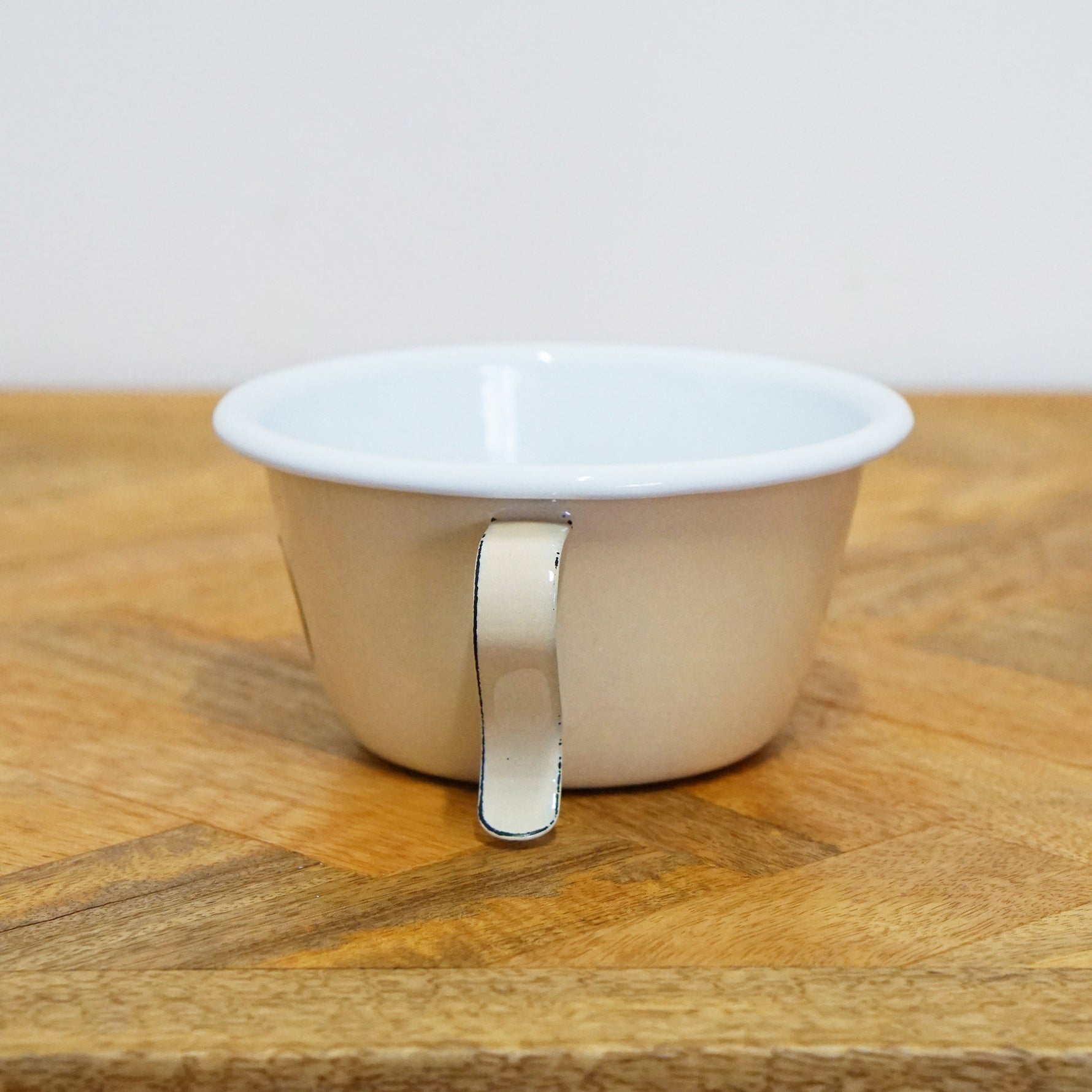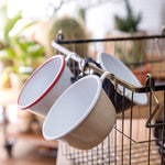 ホーロー素材ならではの軽さと耐久性を兼ね備えた、シェラカップ型のデザインが特徴です。