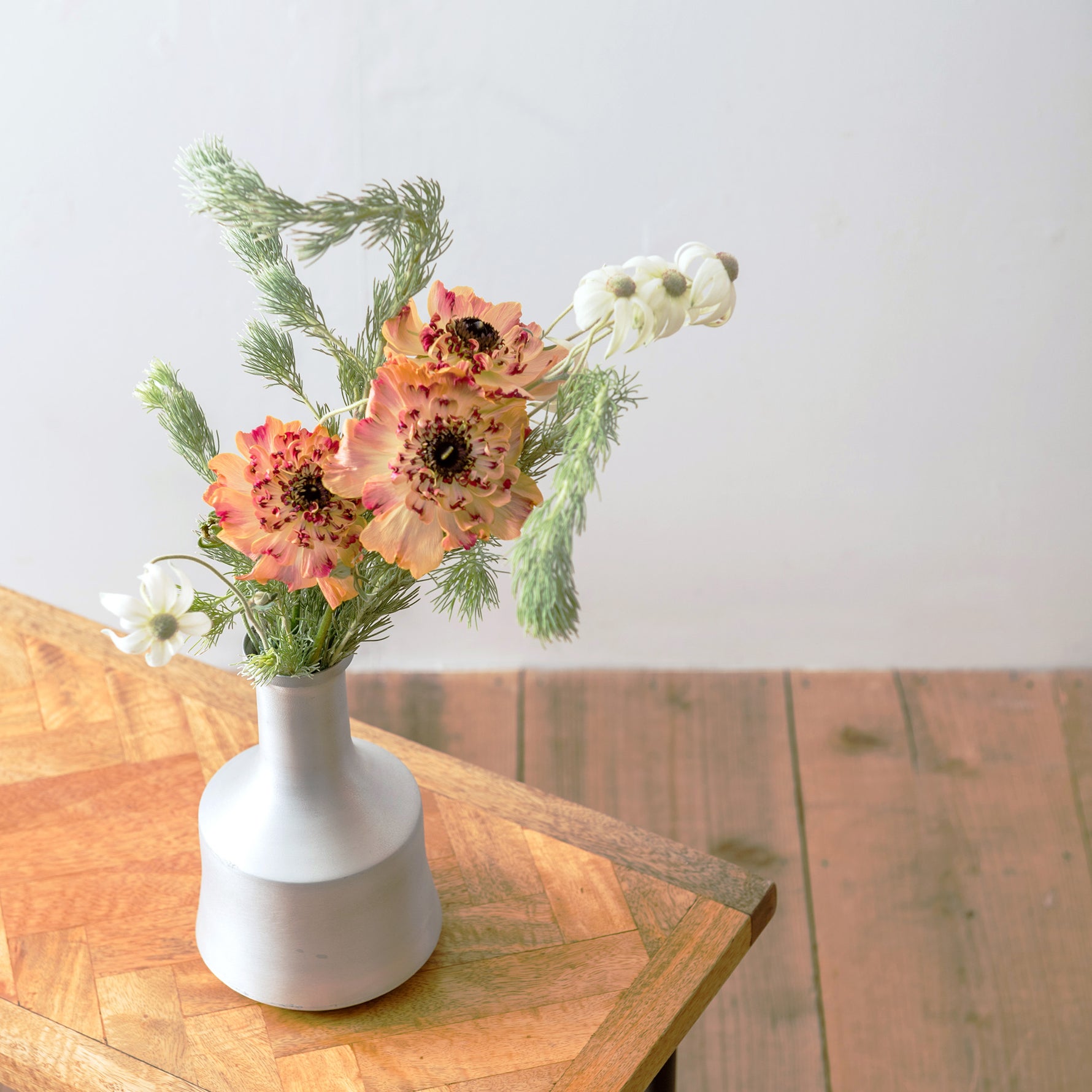 鉄と違い錆びにくい特性の為、ドライフラワーはもちろん生花のアレンジも楽しめる。